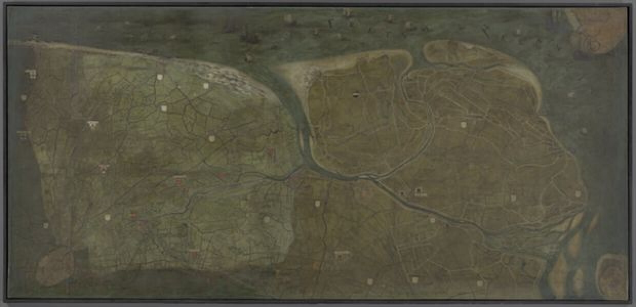 16de eeuwVan de oorspronkelijke topografische kaart van de kasselrij van het Brugse Vrije, die Pourbus in 1571 afwerkte, bleef slechts een vierde van de totale oppervlakte gespaard. Het bewaarde fragment stelt het noordoostelijk gedeelte van het Brugse Vrije voor, van Brugge tot Zeeland. De identificatie gebeurde aan de hand van de getrouwe kopie (0000.GRO0438.I) die Pieter Claeissens reeds in 1596-1597 maakte van de gehavende kaart. De kopie toont ons het gehele gebied tussen IJzer en Westerschelde. Zoals het bijschrift - gedeeltelijk overgenomen van de oorspronkelijke kaart - vermeldt, zijn in afzonderlijke kleuren de verscheidene steden, dorpen, gehuchten, herbergen, kanalen, waterdijken,… voorgesteld. De kaart was de grootste (23,58 m²) en één van de nauwkeurigste uit die tijd. Door de aanwezigheid van de wapens van de vijfendertig ambachten en van elke gemeente of heerlijkheid is ze ook op heraldisch gebied interessant. Dit fragment omvat niet alleen het dichtst bewoonde en meest ingewikkeld verkavelde gebied van het Brugse Vrije. Bovendien is het nauwkeurigste cartografische document van de laat-middeleeuwse toestand van de Zwinstreek.