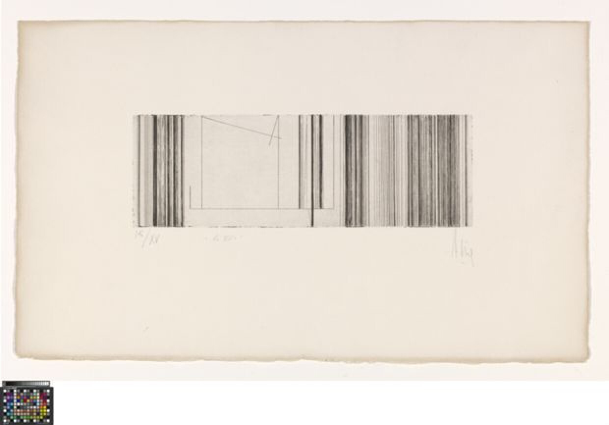Kunstenaar Luc Peire (1916-1993) creëerde schilderijen, grafiek en architecturale integraties. Hij evolueert vanuit het expressionisme naar een stilering van de menselijke figuur om vervolgens in het midden van de jaren ‘50 zijn eigen stijl te ontwikkelen: het abstract verticalisme. Centraal in Peires abstract werk is de verticaliteit, de ruimte en de ritmiek. De verticale beweging staat voor hem symbool voor de mens als spiritueel wezen. Dit vertaalt zich in een compositie van verticale lijnen, balken en kleurvlakken die ruimte suggereren. Kenmerkend is ook het intens coloriet zoals rood, blauw, geel en oranje, dat gecontrasteerd wordt met zwart en wit. Naast schilder was Luc Peire ook graveur. Hij bezat een uitstekende kennis van de traditionele druktechnieken en realiseert etsen en aquatinten. Peire prepareert en graveert zelf zink- en koperplaten die hij op zijn eigen drukpers afdrukt of laat afdrukken in gespecialiseerde drukkerijen in Parijs. Het Prentenkabinet van Musea Brugge bezit het volledig grafisch oeuvre van Luc Peire, dat in 1992 geschonken werd door de kunstenaar zelf. Het gaat om 86 ingelijste werken. In 2017 schonk de Stichting Jenny & Luc Peire het laatste grafisch werk dat Luc Peire realiseerde in 1993 voor zijn overlijden in datzelfde jaar. Deze werken dateren van 1943-1993 en bieden een mooi overzicht van Luc Peires stijlevolutie. Sommige gravures worden gerealiseerd naar een van zijn schilderijen, zoals bijvoorbeeld ‘Ramses’ of ‘Yagul’. Het grafisch oeuvre van Luc Peire is onder te verdelen in drie periodes: - Figuratieve periode van 1935-1944. - Overgang naar abstractie rond 1955 met de etsen ‘Composition’ en ‘Composition-Espace’. - Ontwikkeling van zijn verticale abstracte stijl en uitbouw van zijn grafisch oeuvre vanaf 1964 tot 1993. Het graveren wordt een geliefde techniek van Peire vanaf 1964. Hij realiseert gravures in grijstinten, maar ook kleurdrukken waarbij hij één kleur op de voorgrond brengt. In deze periode heeft Luc Peire zijn eigen abstracte stijl verder ontwikkeld. Net zoals in zijn schilderijen bouwt hij zijn gravures op vanuit een ritmische compositie van verticale lijnen en kleurstroken op een monochroom vlak.