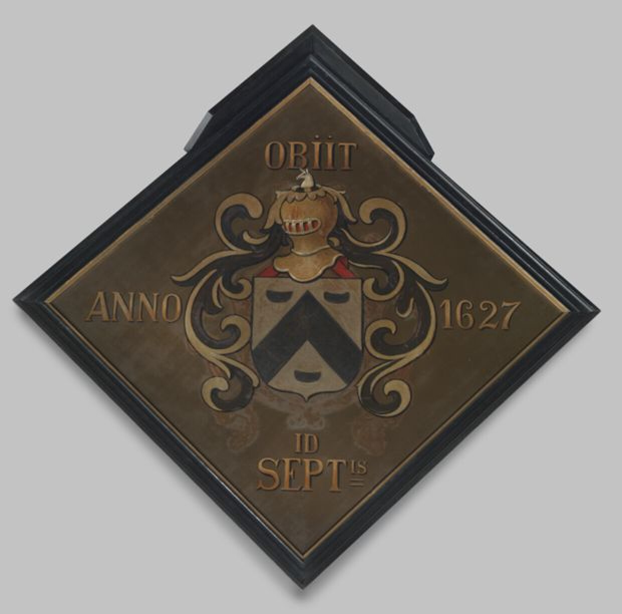 20ste eeuwRuitvormig wapenbord met wapen van de Boodt: zilver, keper van sabel, 2 kano's van sabel in het schildhoofd, 1 kano van sabel in de schildvoet. Getopt met helm getopt met eenhoorn van zilver. Met sterfdatum.