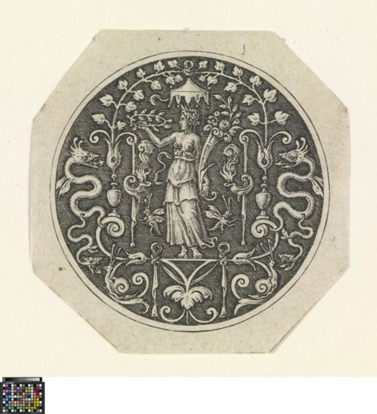 16de eeuwDeze cirkelvormige prent behoort tot een reeks van 6 bladen en een titelblad, gemaakt door de Franse kunstenaar Etienne Delaune.