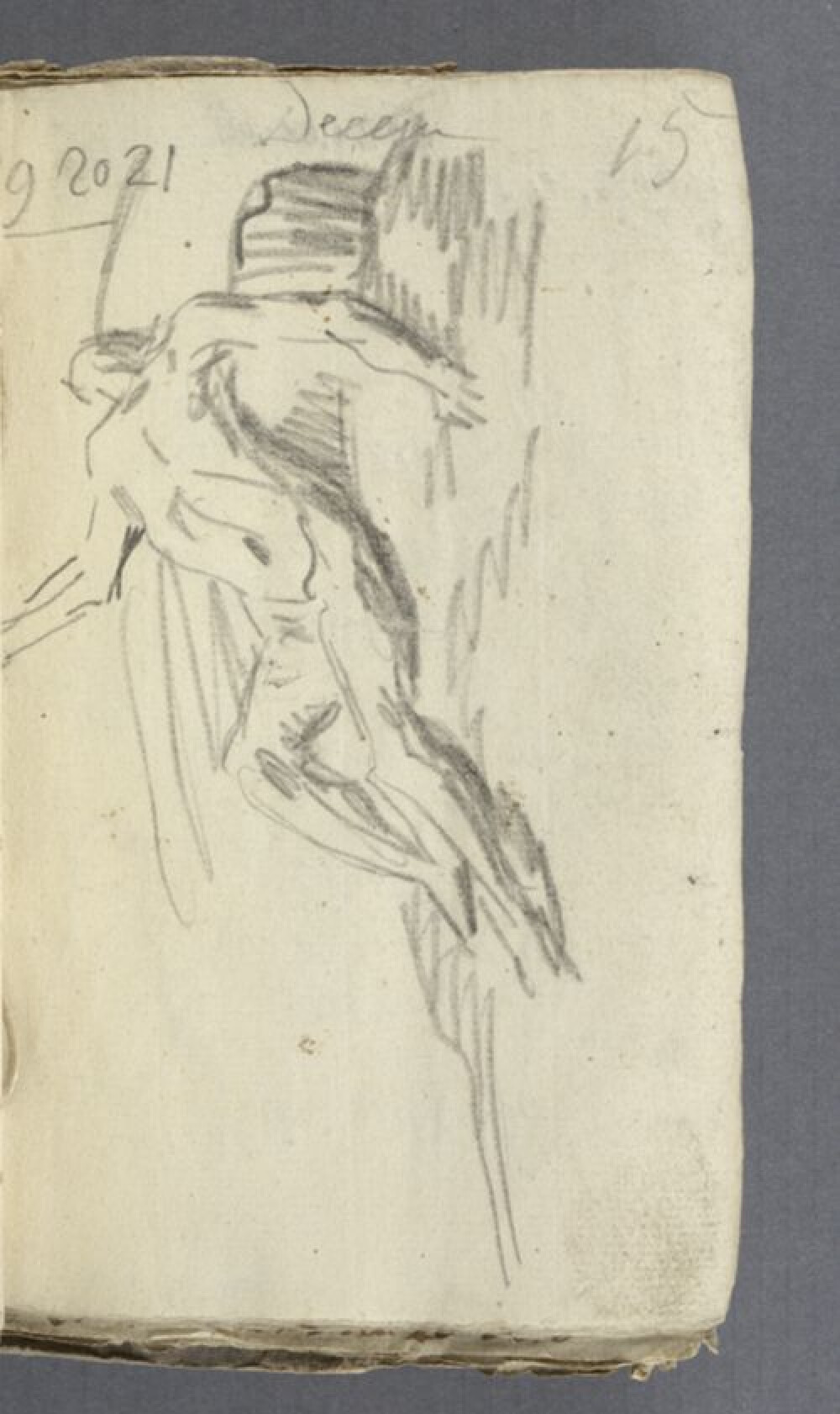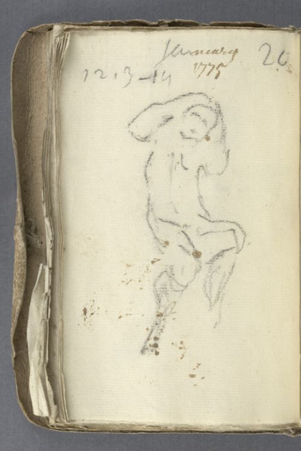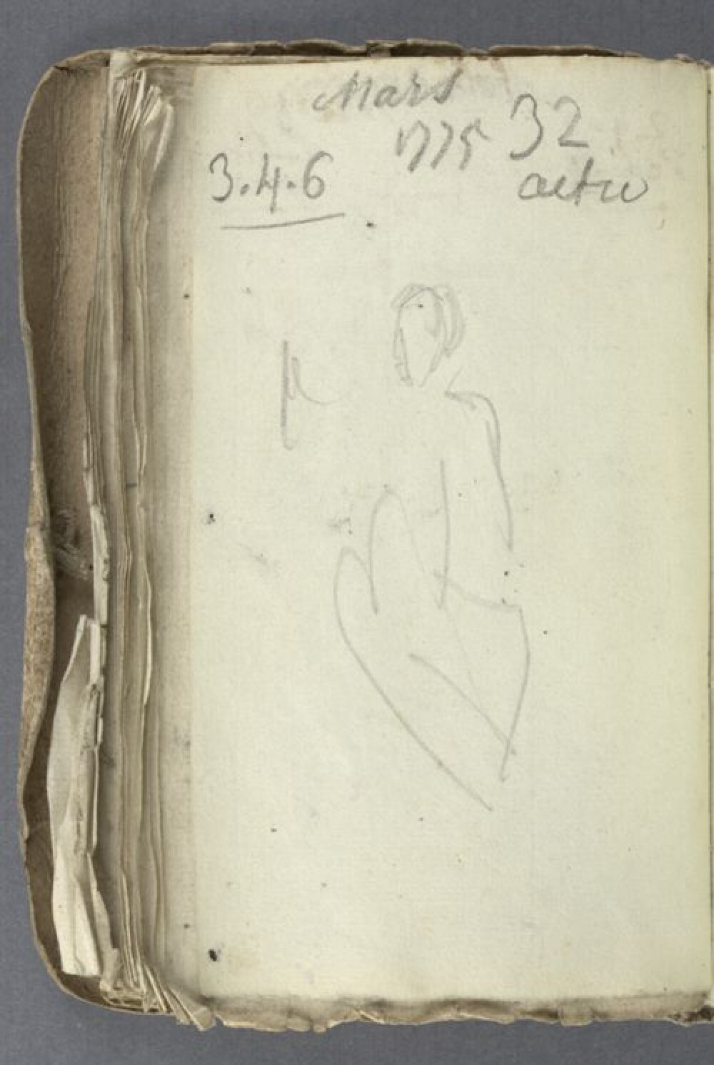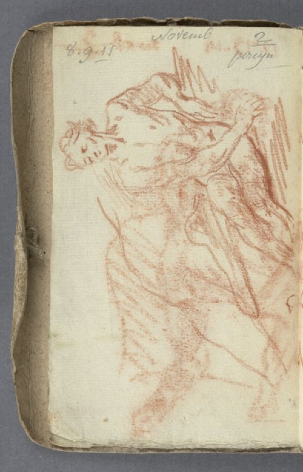 18de eeuwNotitieboekje van Jan Garemijn als directeur van de Academie Brugge, daterend van 1771-1775. Het boekje bevat informatie over de schooljaren 1771-1772 en 1774-1775. Het gaat om 54 folio’s, in vier katernen samengebonden tot een schriftje met een kartonnen omslag. Aan de flap van het voorplat is nog de restant van het touwtje te zien dat als sluiting diende. Garemijn gebruikte het enerzijds als schetsboekje, maar hij maakte er ook aantekeningen in. De gebruikte schrijf- en tekenmedia variëren. Er is zowel rood krijt, potlood, bruine inkt, als zwart krijt of houtskool gebruikt. De bladzijdes bestaan uit gevergeerd papier. Het boekje heeft een iets andere opbouw dan de andere notitieboekjes omdat informatie over twee schooljaren bevat. De eerste bladzijden zijn verbonden aan het schooljaar 1771-1772. Ingeleid door twee leerlingenlijsten, wellicht van de eerste wedstrijd om plaatsen in november, volgen de schetsen die Garemijn maakte tijdens de poseersessies in de klas naar model. De acties van de naaktmodellen werden snel op papier gezet. Hij gebruikte hiervoor steeds een enkel medium: rood krijt of grijs potlood. De laatste tekeningen van het schooljaar zijn gelinkt aan de wedstrijd om prijs. Deze schetsen zijn in bruine inkt of potlood gemaakt. 1772 was een uitzonderlijk prijsjaar omdat Garemijn toen een van de poses moest aanpassen. Om deze reden komen de bewaarde wedstrijdtekeningen (0016.GRO0034.II;0016.GRO0037.II) overeen met de aangepaste actie 23 (14r-v) en niet met de eerstgekozen actie 22 (13v). Naast de schetsen noteerde Garemijn steeds informatie in de kantlijn. Zo weten we dat er doorheen dit schooljaar twee modellen, quasi afwisselend, poseerden: [Jan] Noost en [Pieter] Percyn. Percyn was wel de enige die voor de prijswedstrijd model stond. Volgend op enkele notities, blanco bladzijdes en een berekening van het aantal lampen in de academie, kondigt een notitie het schooljaar 1774-1775 aan. De lessen vatten aan op 26 oktober, om 17u30 precies. Nadien volgen de schetsen van alle acties die tijdens het schooljaar geposeerd werden. Meestal gaat het om schetsen in potlood of bruine inkt met daarbij de data van de poseersessies. Opvallend is dat de naam van het model steeds ontbreekt... Pas bij de laatste schets van dit schooljaar, geeft Garemijn aan dat Percyn in totaal 107 avonden geposeerd heeft. Hij poseerde dus alle acties gedurende dit schooljaar en ontving hiervoor twaalf stuivers per avond. Na de schetsen volgen opnieuw enkele notities, hoofdzakelijk over het schooljaar 1771-1772. Zo zijn Garemijns plan voor de prijswedstrijd en de 'decoratiën' voor de prijsdeling erg leuke en interessante informatiebronnen (52r-v). Het boekje sluit nog af met twee leerlingenlijsten uit 1774-1775, een van de klas naar model en een van de klas naar sculptuur.