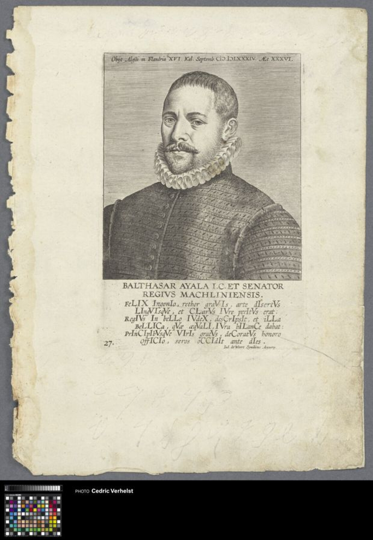 17de eeuwPortret van jurist Balthasar Ayala in buste naar links. Gebruikt als boekillustratie in o.a.:Aubert Le Mire, Illustrium Galliae Beglicae scriptorum icones et elogi, 1604.
