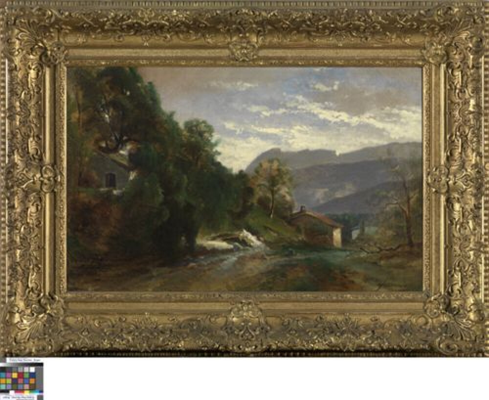 19de eeuwFourmois is de eerste landschapsschilder in België die een fundamenteel belang hecht aan de natuurstudie en die de eerste stappen zet in de richting van het pleinairisme. Naar het voorbeeld van de schilders van de school van Barbizon probeert hij afstand te nemen van het idealiserende academische landschap. Hij werkt zoveel mogelijk naar de natuur door haar dagelijks te observeren. Dit doek met een bergachtig landschap, riviertje en watermolen stelt een site voor te Voreppe nabij Grenoble in de Dauphiné. Het Groeningemuseum bezit hiervan ook een kleine studie (0000.GRO0256.I) die hoogstwaarschijnlijk ter plaatse geschilderd is. De grotere versie is vermoedelijk in zijn atelier verder afgewerkt.