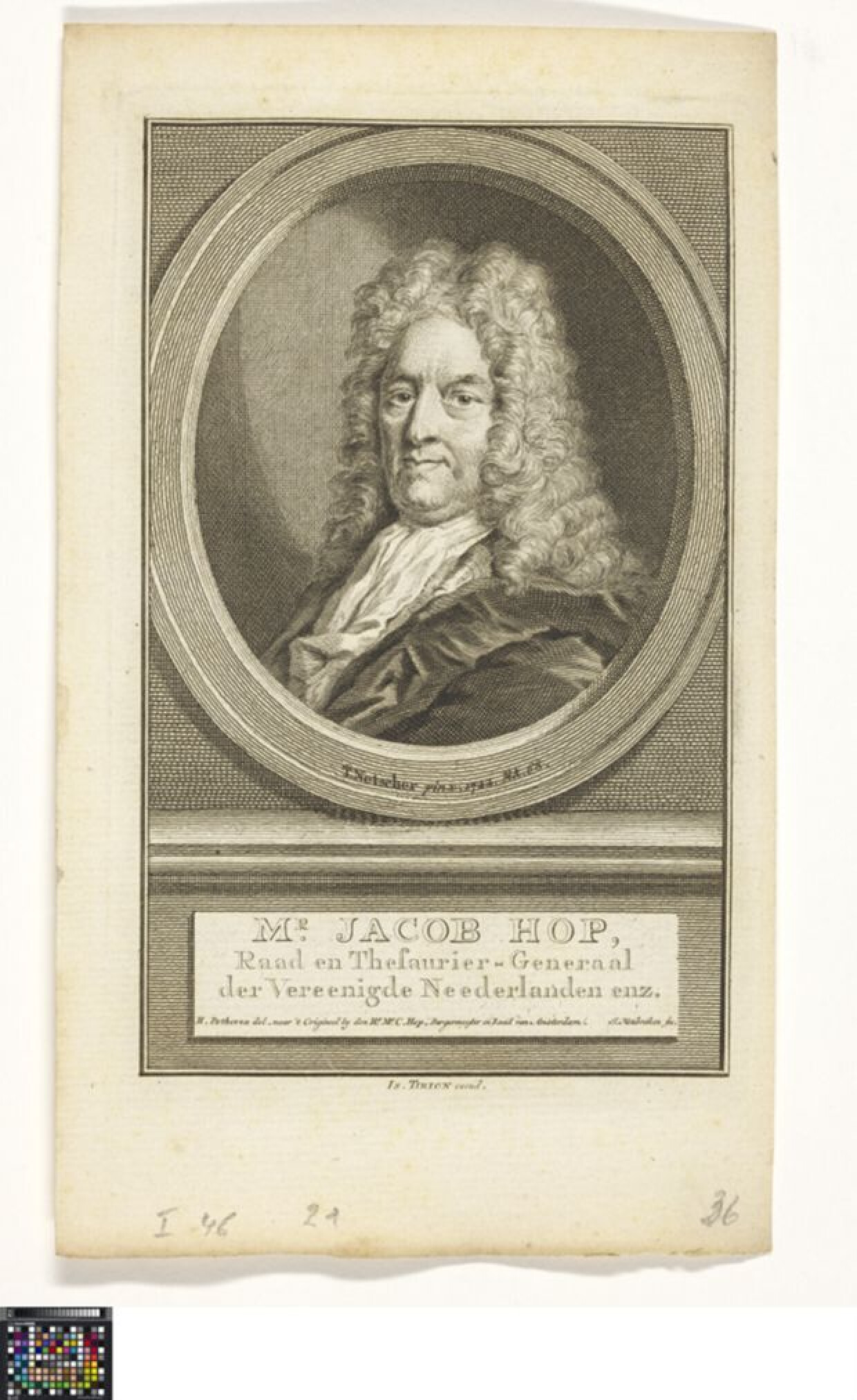 18de eeuwBusteportret van thesaurier-generaal Jacob Hop, in een ovale lijst.